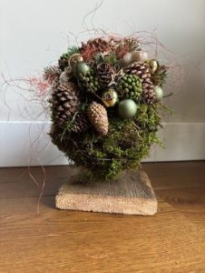 Dit jaar maken we een tafelstuk. We gaan werken met, en op een bol met mos.